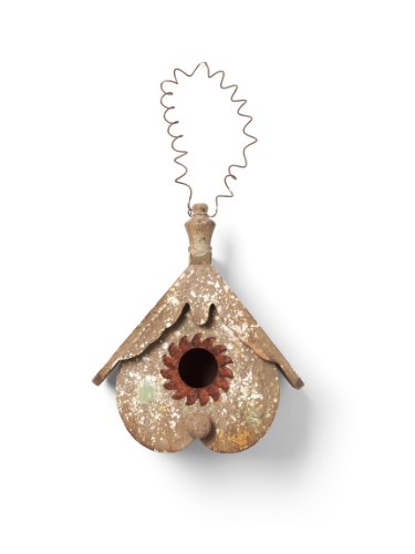 Create a haven for your fine-feathered friends with our secret Garden Hanging Bird House. This fun birdhouse features a kinky metal hanger and a funky metal embellishment around the hole, giving this fully functional birdhouse plenty of charm.